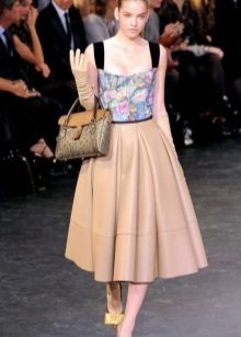 If such a skirt is worn on a special occasion, a silk or lace top, an elegant trench coat and a small clutch are selected to it, and the best shoes for such a dress are on a stiletto