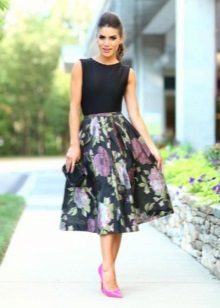 One of the most sought-after patterns on a full skirt is a flower. This print is presented in different color combinations and different sizes of flowers.