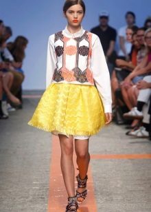 The length of the lush models for the summer season is presented as mini-skirts, and products in the floor.In summer, puffy skirts are combined with a shirt, slinky top on the straps, a blouse or a shirt.