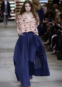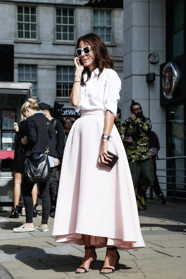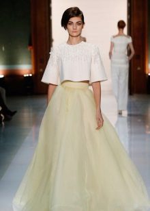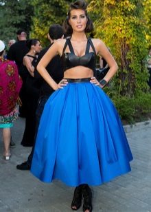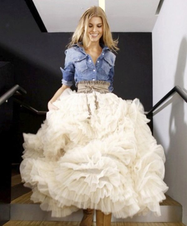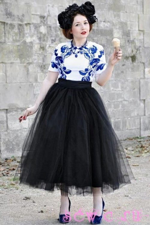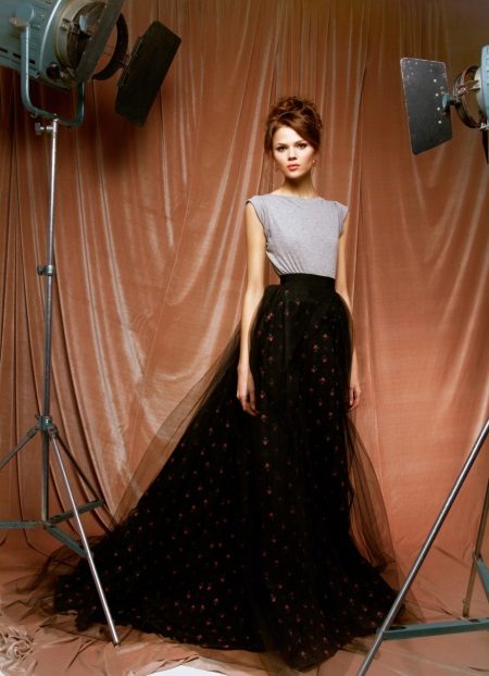 Most successfully, this variant of the skirt looks on a girl of medium and tall height with narrow hips, and puffy skirts of considerable length are not suitable for beauties with the figure “pear”. Combine a long volumetric skirt with a fitted top or a sleeveless blouse.