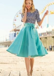 Most often for the image in the retro style choose puffy skirts, Tatiana, because these models were popular in the 40s, as well as in the 80s and represent the style of new bow. They look feminine and help to hide full hips. The classic length of "Tatyanka" falls just below the knees, and the colors are very different. For pomp, this skirt can be worn with a petticoat.