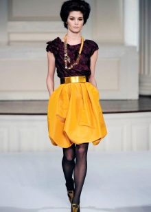 - Balloon skirts. In their pattern provides the base and the bulk of the upper part. Layers are stitched from the bottom to form a shape similar to a flashlight. To keep such a skirt in shape, for its manufacture choose dense fabrics.