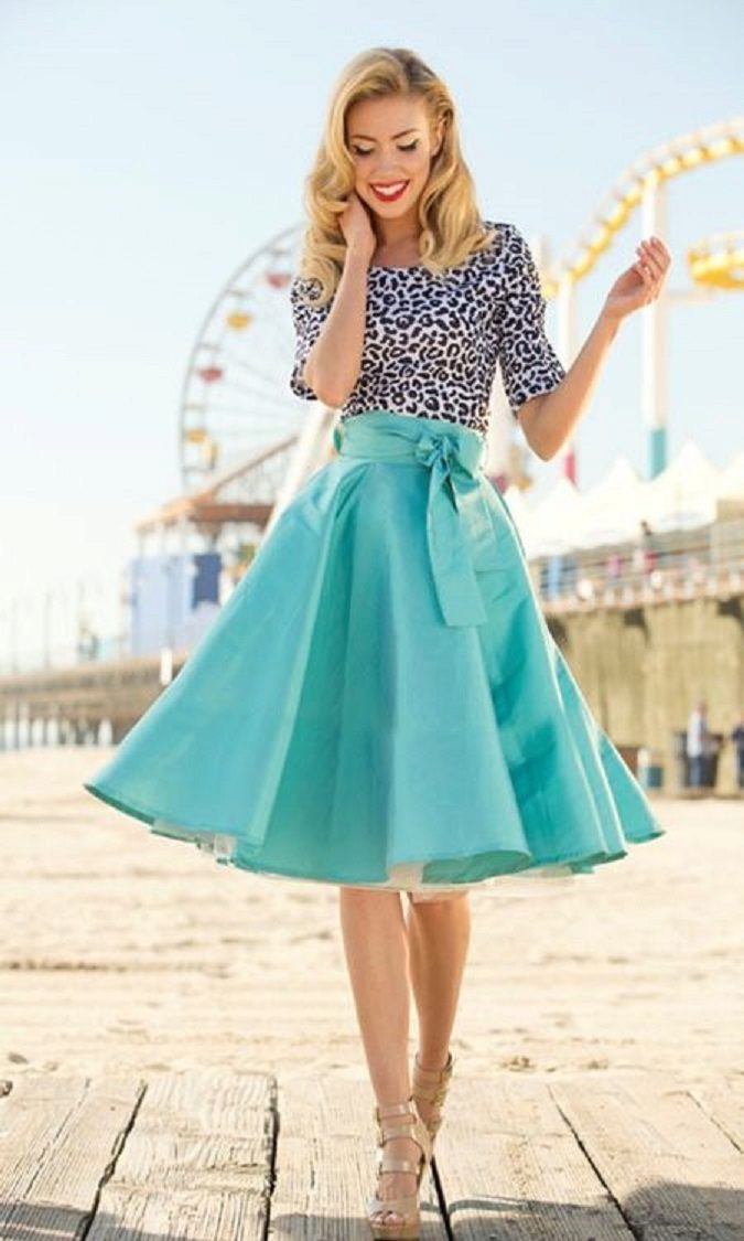- The voluminous skirt fits perfectly into the retro look. It is complemented by a cute blouse or corset, as well as boats.
