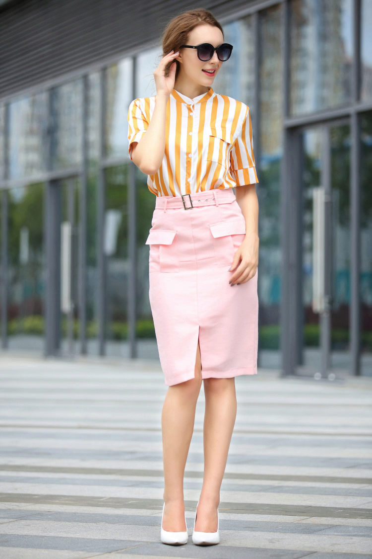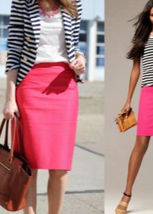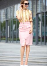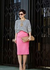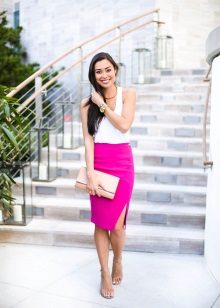 Pencil skirt is the embodiment of strictly style, so you should not buy a saturated pink skirt. It is necessary to give preference to models of a light shade, then you can go to work in such a dress.