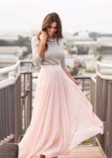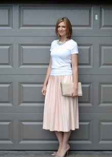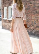 Pale pink skirts are often found in the collections of famous fashion designers. They are suitable for creating a business style, because the brightness is not welcome in the workplace.