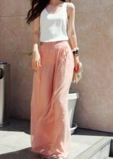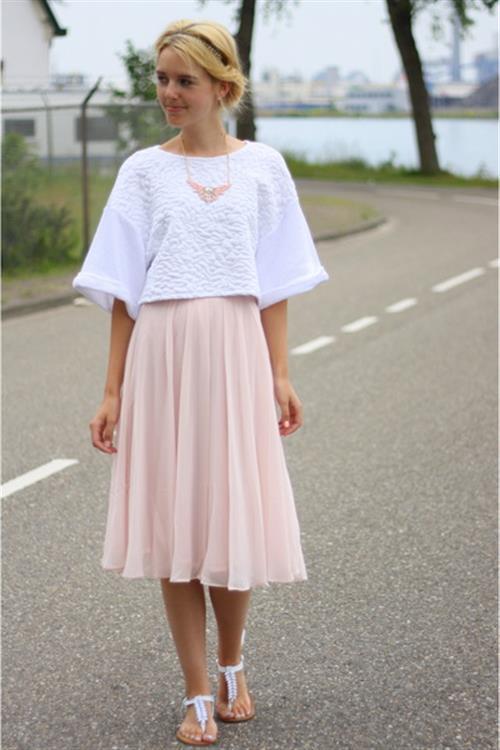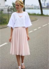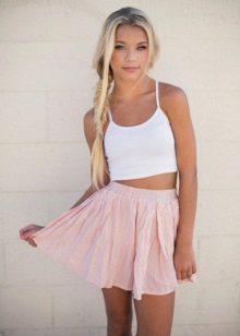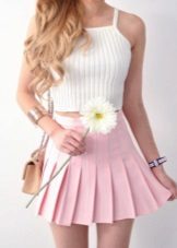 The combination of pink and white looks very romantic. To add an image of tenderness, you need to choose flared skirts of thin, flowing fabrics. White blouse is ideal for the embodiment of office style, and a white top - for sports.