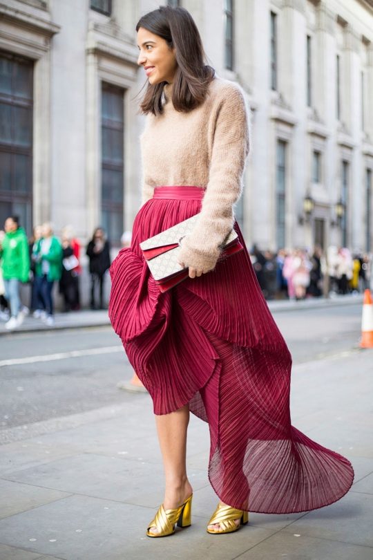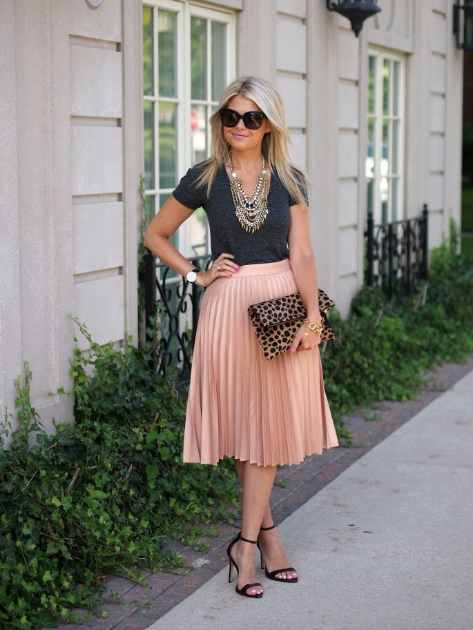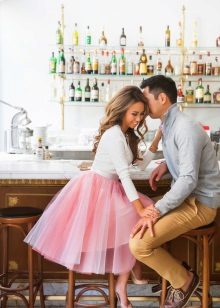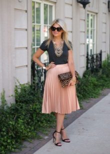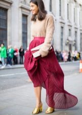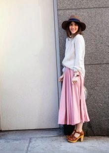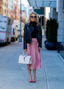 Pleated skirts of airy fabrics are always in demand, because they allow you to look romantic and feminine. The model in pink color further emphasizes the tenderness and beauty of the girl. A pleated skirt can be long or short. Each woman of fashion should decide for herself which length suits her best.