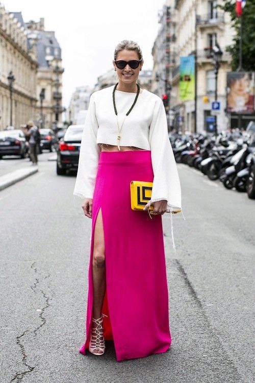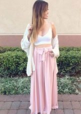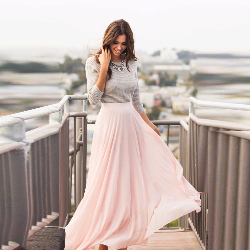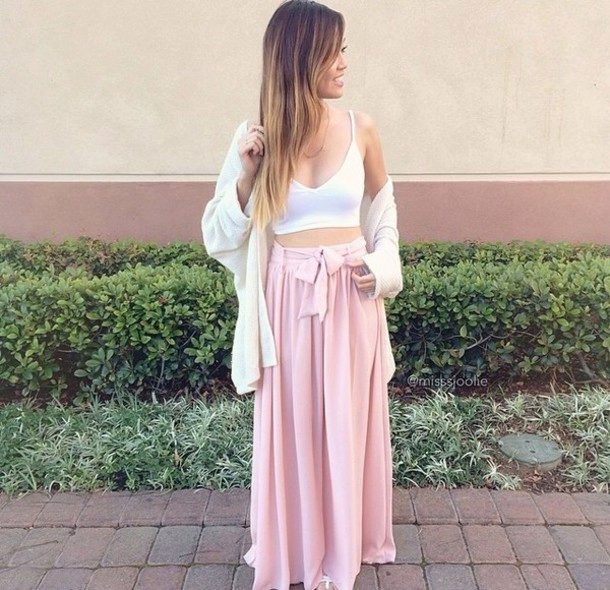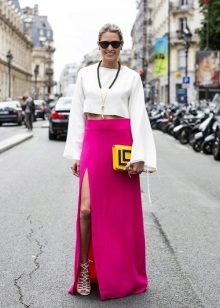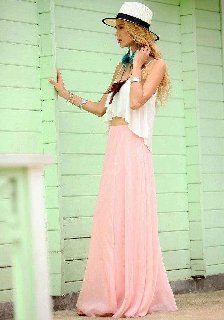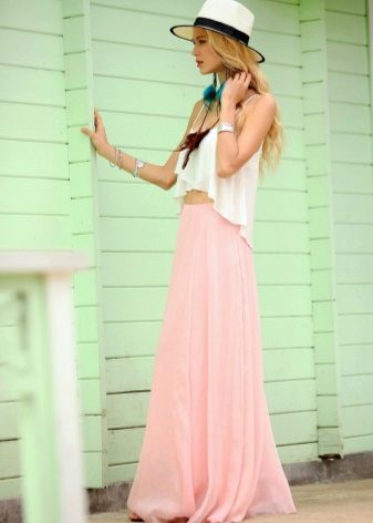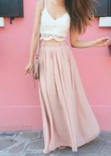 Pink skirt length maxi is always in great demand, because it helps to create a spectacular, bright and stylish look. In this skirt, every girl will look visually taller and slimmer.