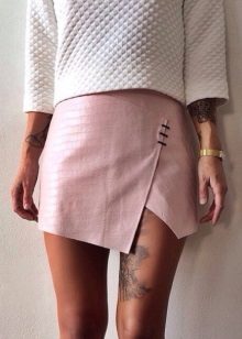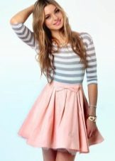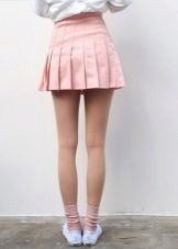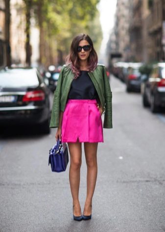 Pink skirt length mini looks childish, so you need to carefully pick up the rest of things. An excellent solution would be a combination of a pink miniskirt with a cream blouse. When choosing shoes should pay attention to the shoes-shoes.