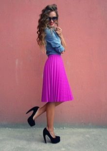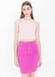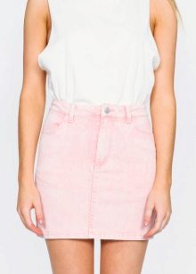 Denim skirts are great for every day, but a pink model will help add femininity and beauty to the silhouette. Denim models often have a mini length, so slender beauties prefer them. Pink denim skirt goes well with a blue or white top.