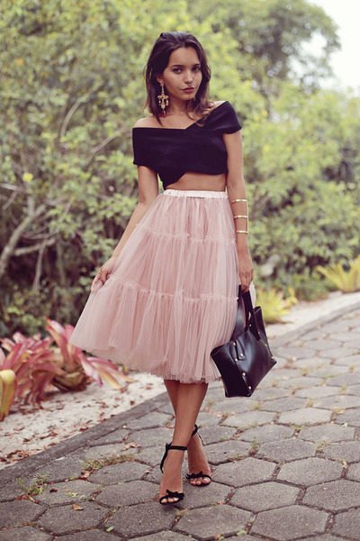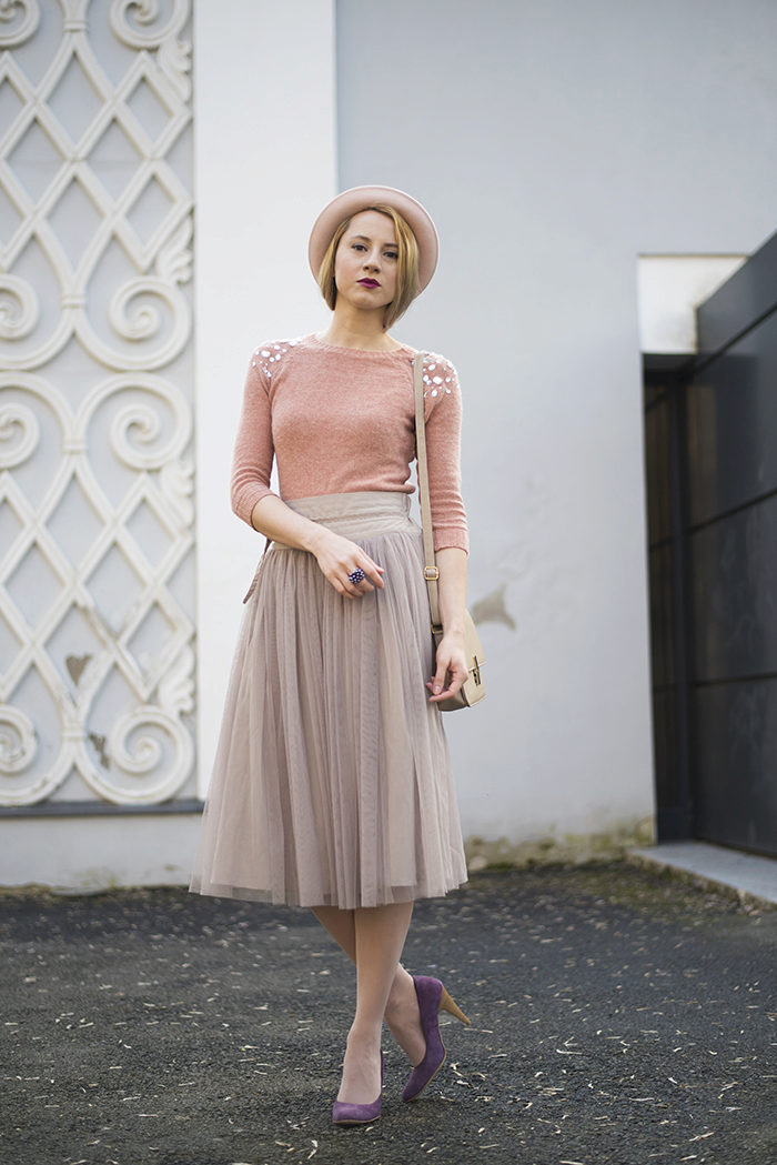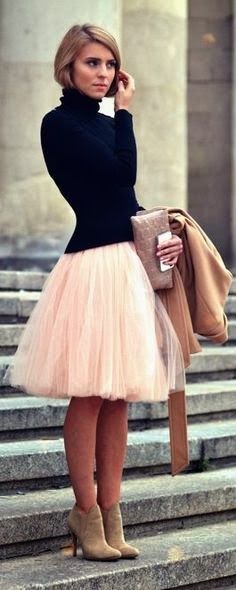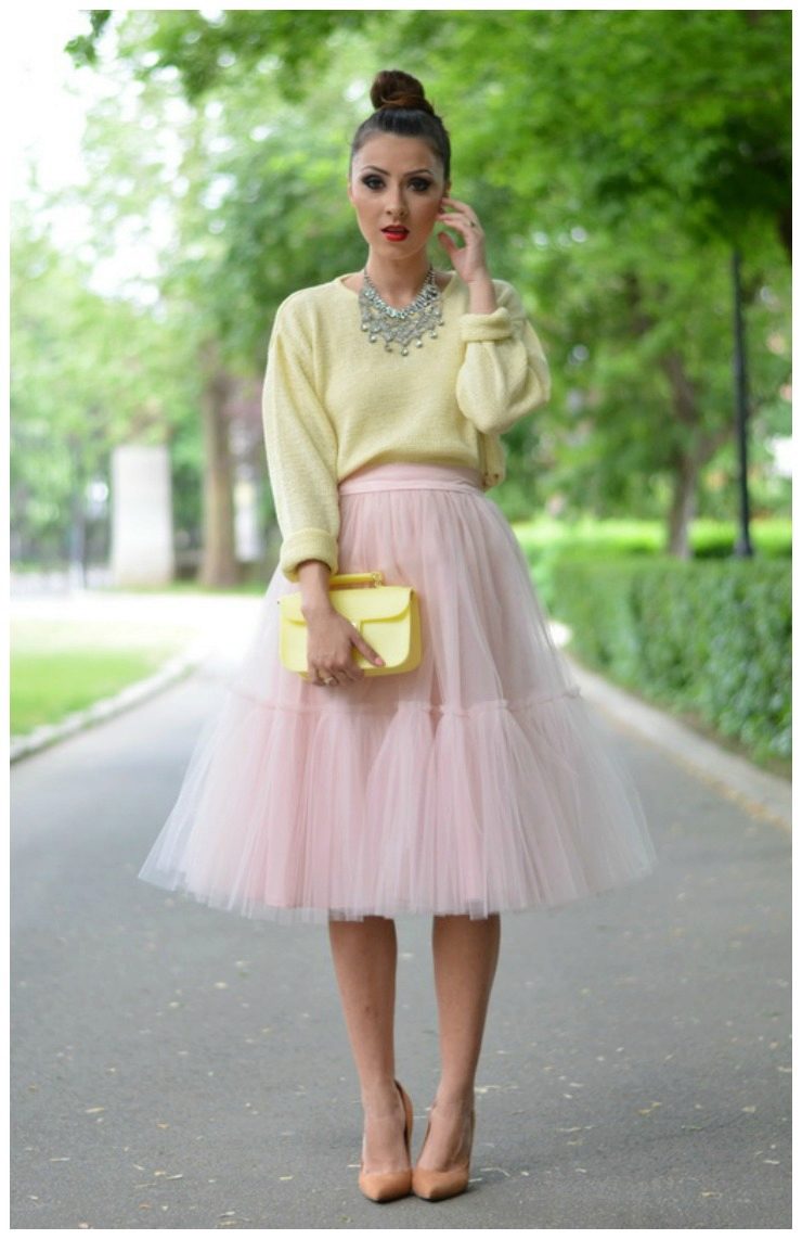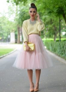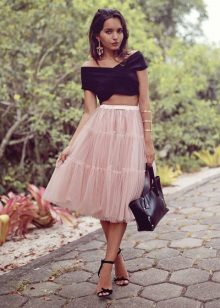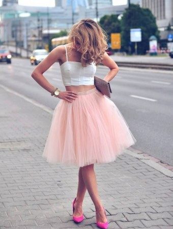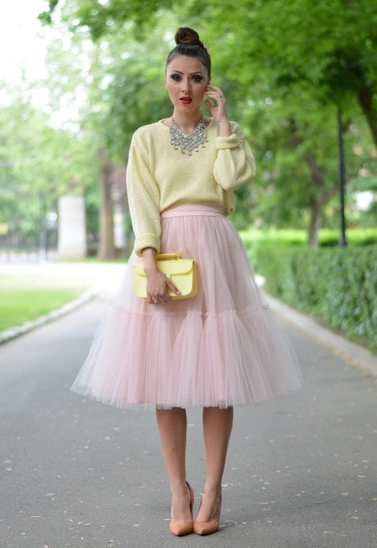 The skirt is the main accent, so other things and accessories should emphasize its beauty, and not distract attention from it.