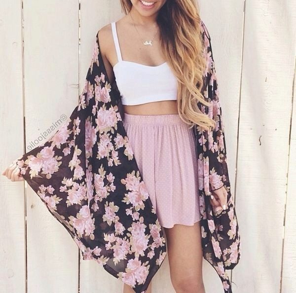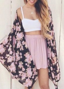 With a pleated skirt, the top is adorned with a floral print. You can also pick up accessories on a floral theme. The combination of white or lime with pink today in trend.