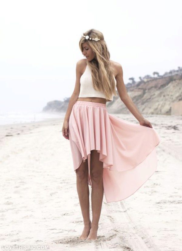 This style allows you to emphasize femininity, romance and tenderness. Therefore, the pink color is perfect for the sun skirt.