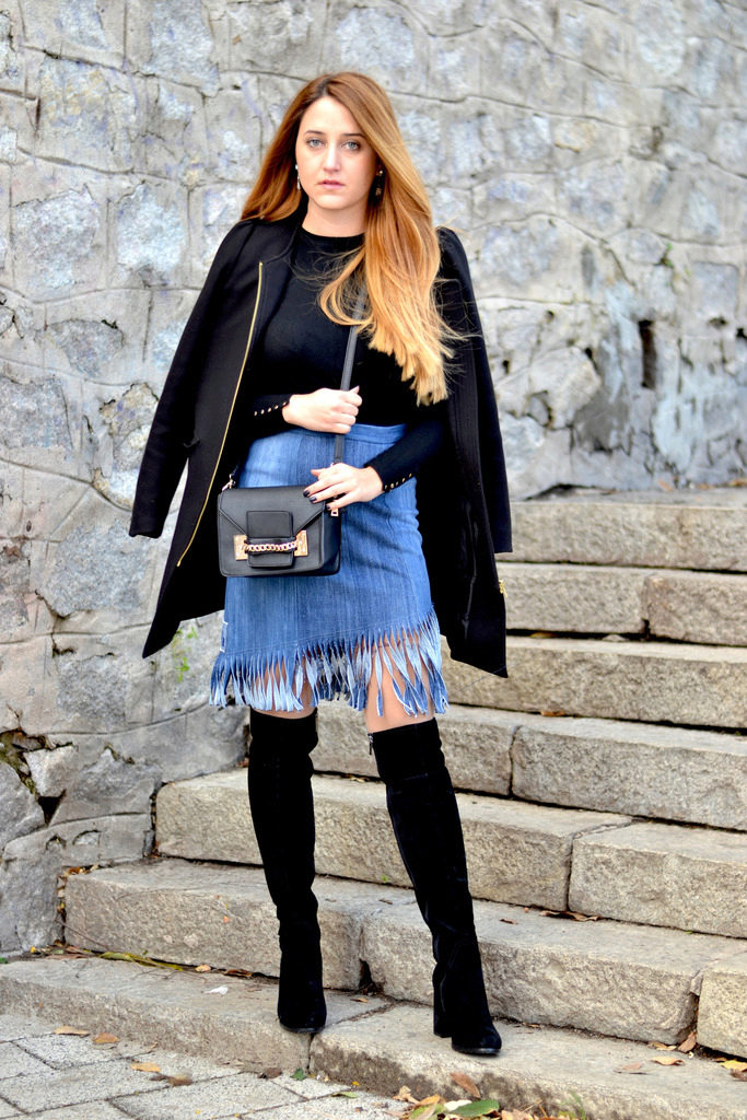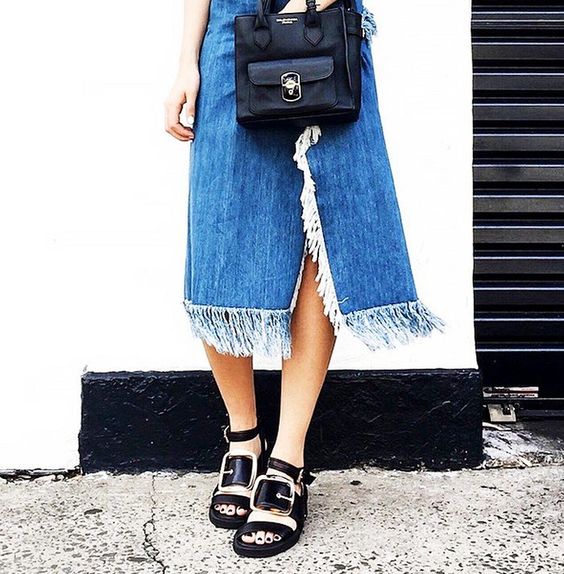 The fringe looks great with denim, so many fashionable women replenish their wardrobe with a beautiful denim skirt with a fringe. It can be worn both at work and for every day.
