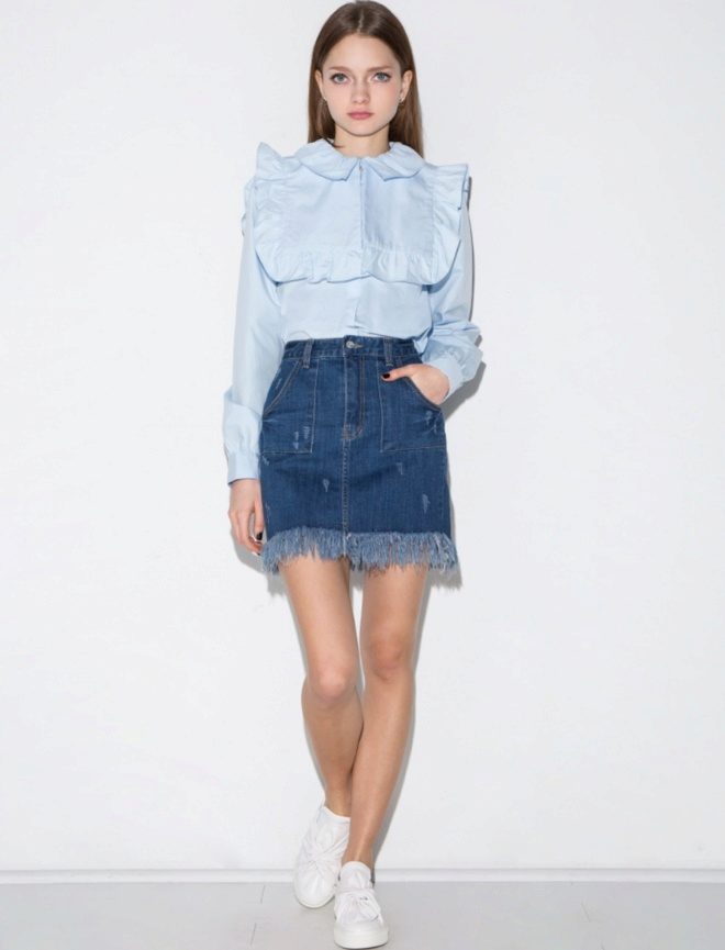 It is combined with many elements of the wardrobe, gives the image of femininity and romance. The denim skirt is practical and comfortable.