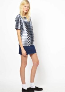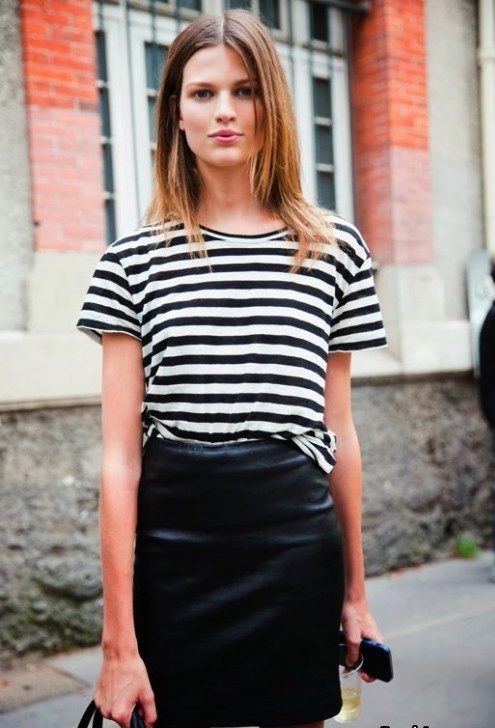 Striped T-shirt never goes out of fashion, it is stylish and versatile. It is best to wear it with a monophonic skirt of any style. It can be a pencil, a year, a mini, an A-silhouette, a pack.