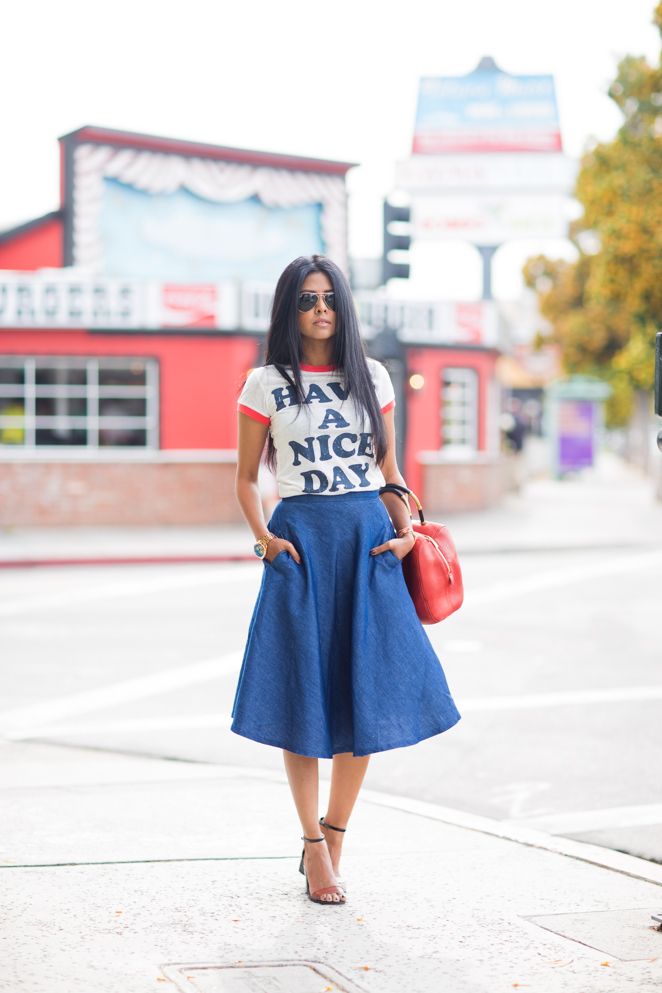 Many girls choose jeans and a T-shirt as casual wear. But if you wanted to become more feminine and wear a skirt, this does not mean that you have to puzzle over the choice of the top. You can safely wear your favorite T-shirt and at the same time look very stylish!