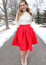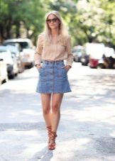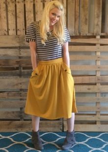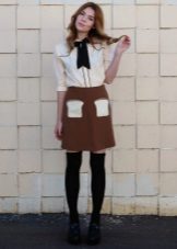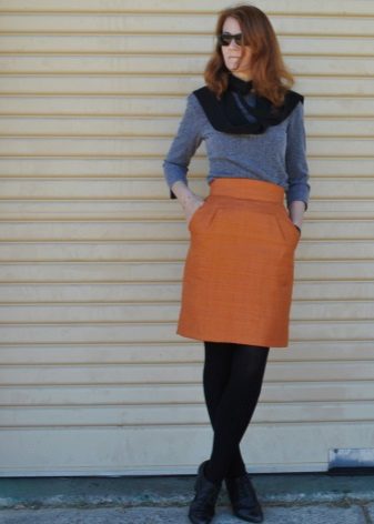 Jacket, cardigan, coat or jacket can serve as outerwear to the skirt with pockets. Shoes for such a skirt can be chosen as shoes with heels, sandals or boots, as well as coarse shoes, sneakers or models on the platform.