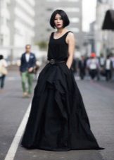 Modern skirts of this style look lush due to folds, ruffles, multi-tiered or flounces. In such folds and tiers, it is easy to hide pockets, so in lush skirts such elements are usually hidden.
