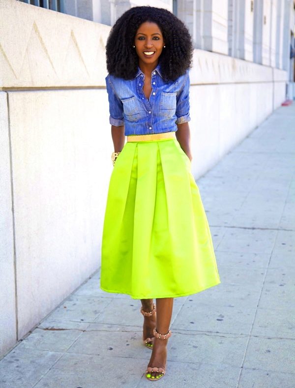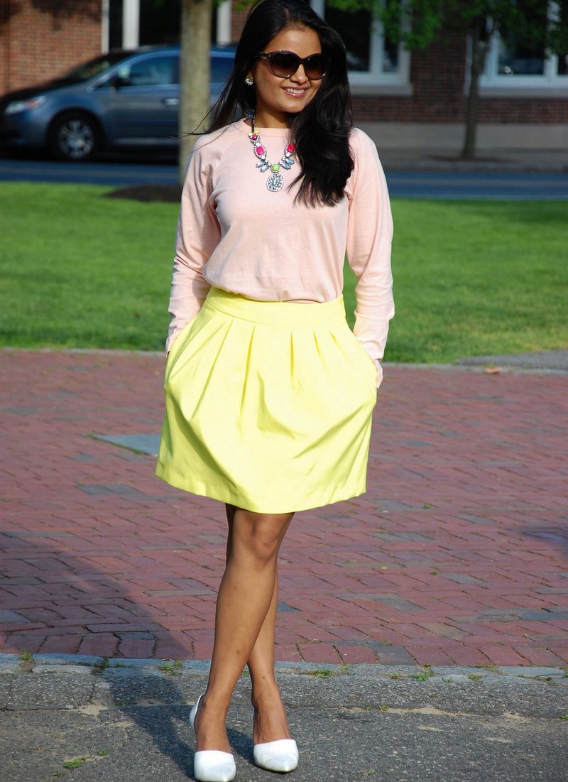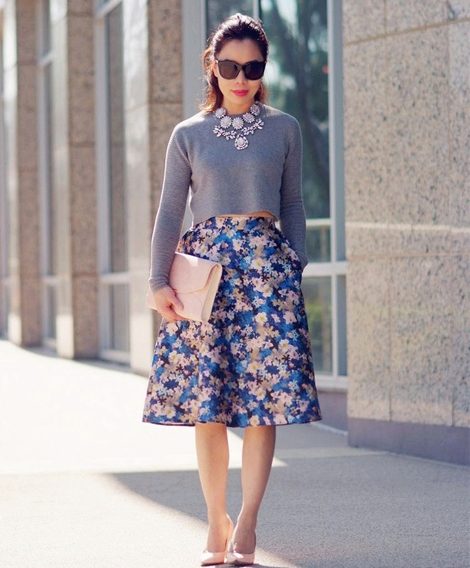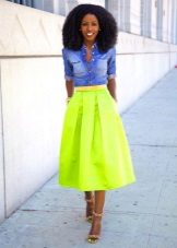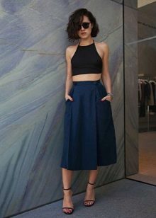 The pattern of such a skirt is half a circle, so the half-sun style skirt always has at least one seam or smell. The upper part of the skirts of this style is represented by a yoke, a belt of different widths or an elastic band. In the decoration of the half-skirt, decorative pockets of various shapes can be used.