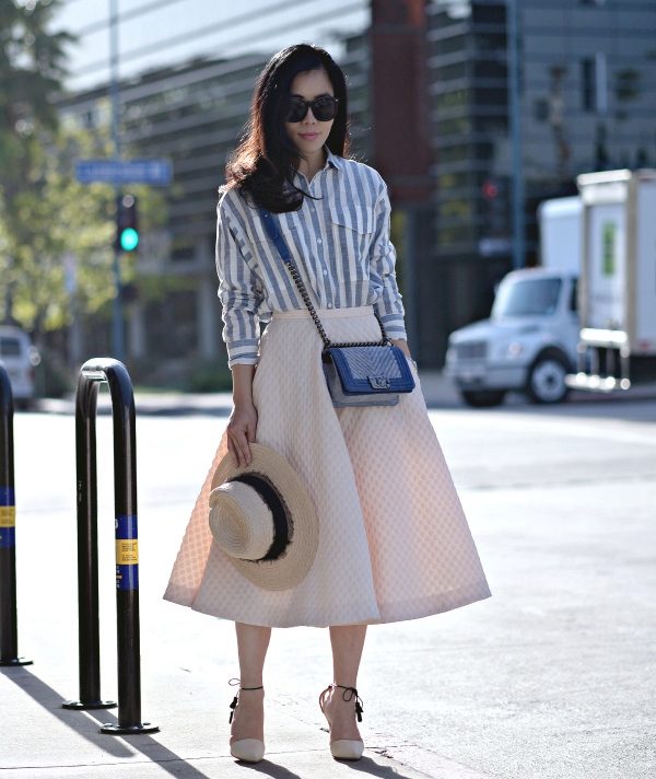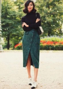 This skirt emphasizes the waist and gently wraps around the hips, extending down like a tulip cup. She is unusually tender and feminine, can have different lengths and is often sewn with a smell. Tulip skirt pockets are often used as they help to add volume to the hips. There are also models with hidden pockets.