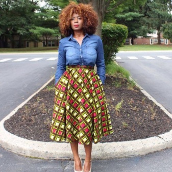 Especially carefully choose a skirt with such pockets should be full of girls. Large trim elements always attract attention, so the presence of overhead large pockets on the skirt will add volume to the hips. This should be taken into account by girls with a pear-shaped figure (they should avoid models with large pockets) and beauties with an hourglass figure (too large pockets will spoil the proportionality of the silhouette).