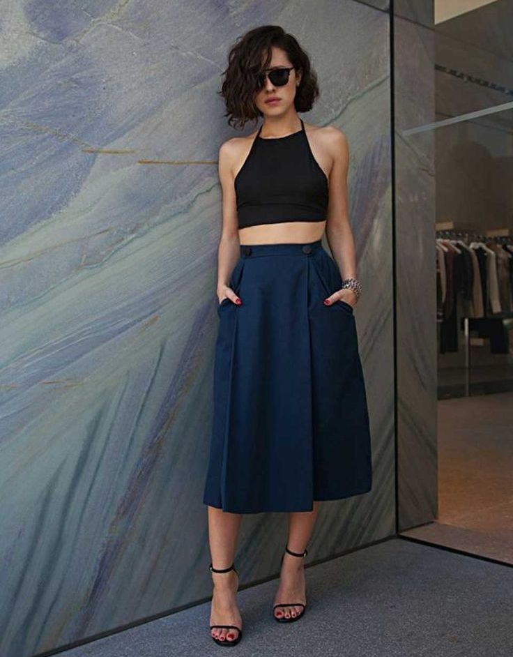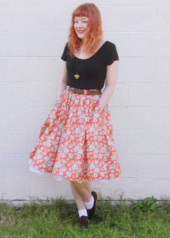 If you expand such a skirt, you get a circle, inside of which there is a hole under the waist. The skirts of this style are sewn both from one cut and sewn together several pieces of fabric. Most often, these skirts are elastic, but there are models with a zipper and belt. Pockets on such skirts can be both laid on, and welded, and located in the seams.