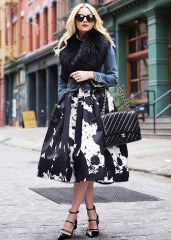 The length of the model of skirts with pockets are very different. Pockets can be found both on long skirts to the floor, and on models with midi length. Also often miniature skirts adorn the pockets and short models just above the knees.