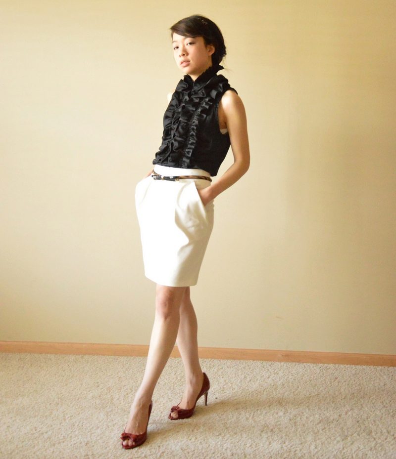 The top of the skirt with pockets should be selected according to the style and the occasion.