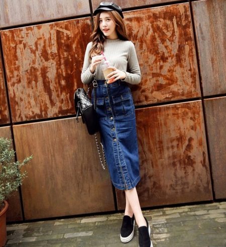 With the help of pockets, a girl can add volume to her lower body or, on the contrary, narrow the line of her hips. The pockets are found on models of different styles and can both be invisible and stand out, representing the eye-catching decoration of the skirt.