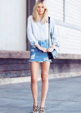 The combination of a shoe with a mini-skirt is already a classic, because such an image can often be found in everyday life. Short models can be combined with voluminous sweaters, elongated jackets or feminine blouses.