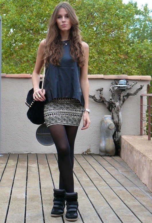 Models on the wedge look better with a long cut skirt, although some girls prefer to wear such a model of shoes with a mini chiffon skirt. You must be very careful when choosing an ensemble from a long skirt and a shoe, as this combination looks ridiculous on full girls. This option is suitable for slender, long-legged women.