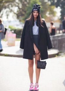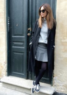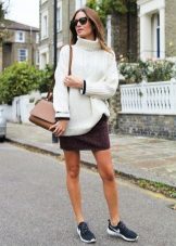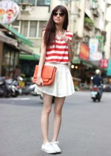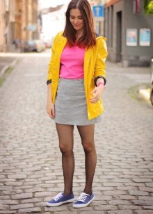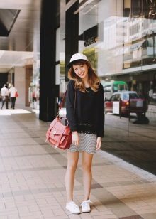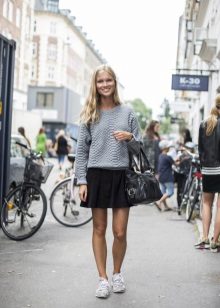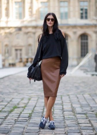 Oddly enough, but the "official" skirt is perfect for sneakers or sneakers. It is only necessary to choose a model that only remotely resembles a part of an office suit. It can be a skirt made of leather or denim, as well as a knit skirt in bright or bright colors.