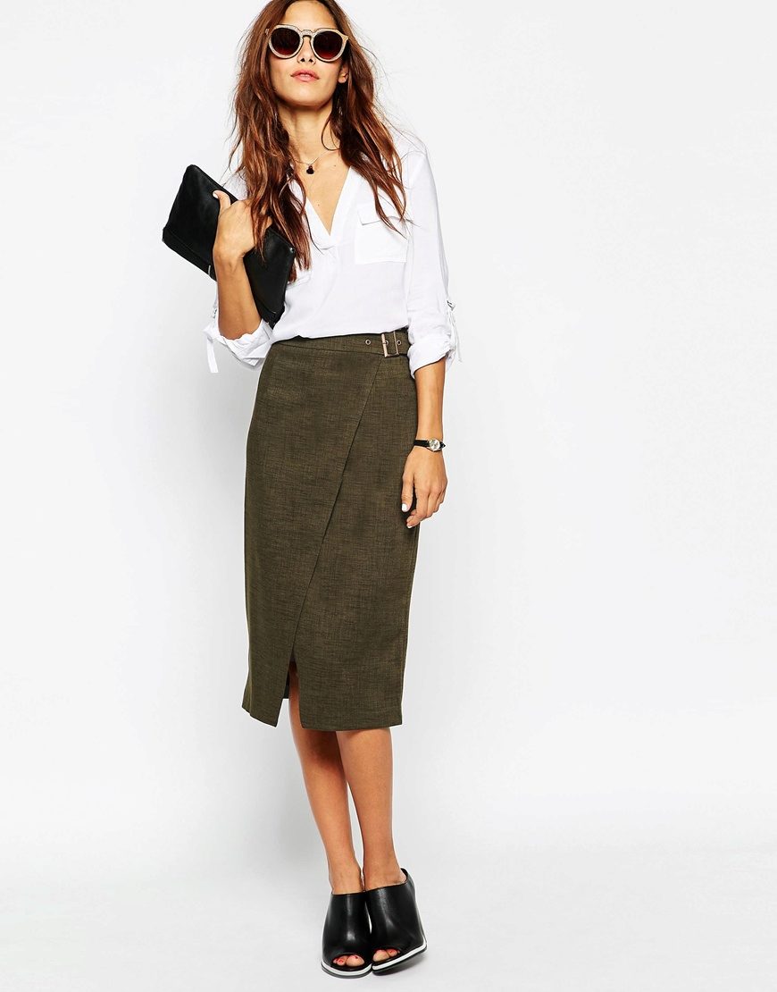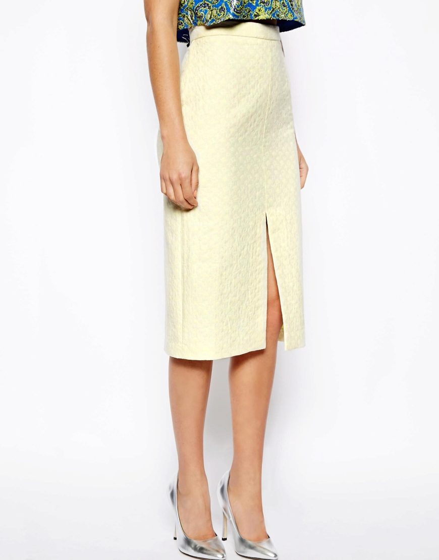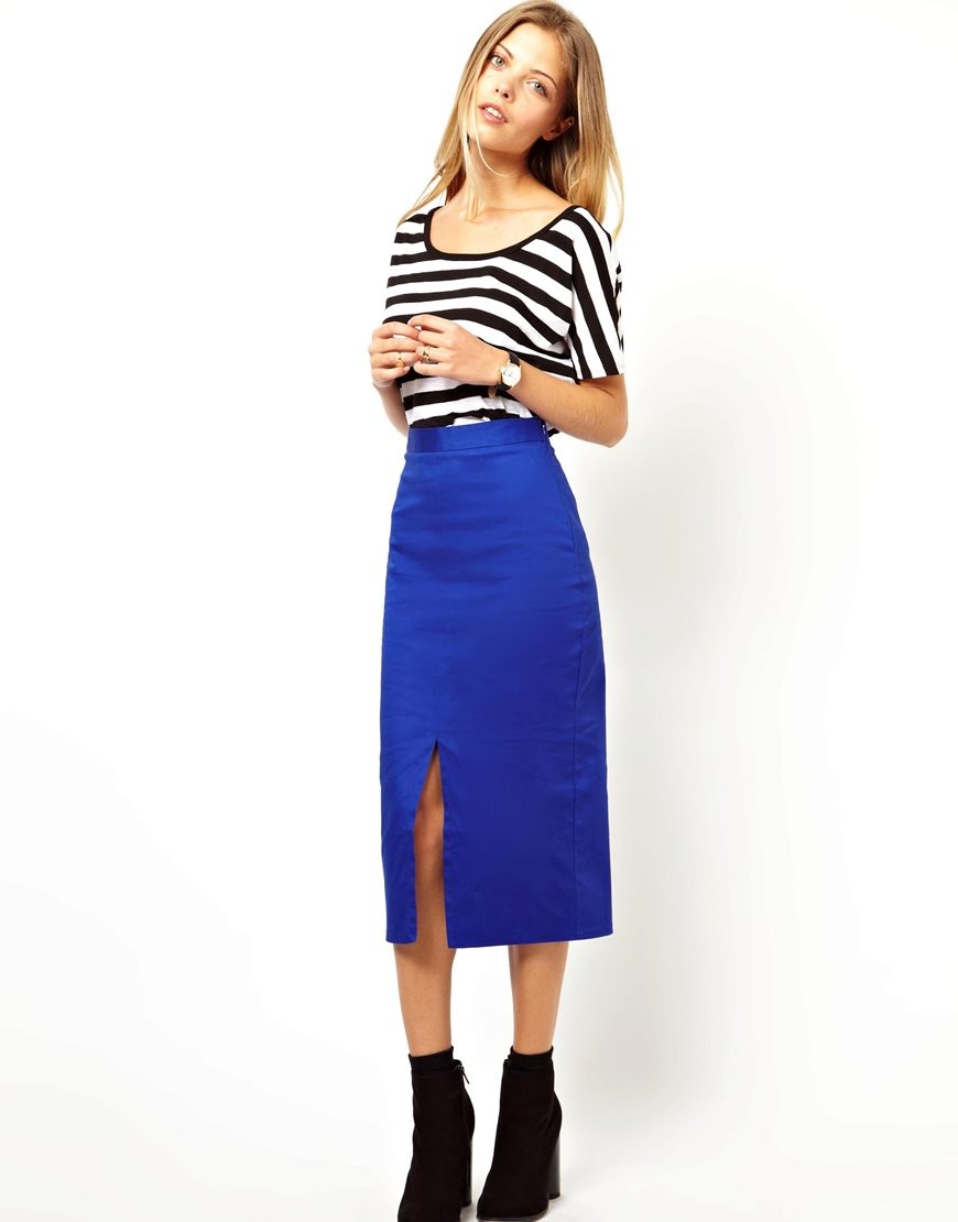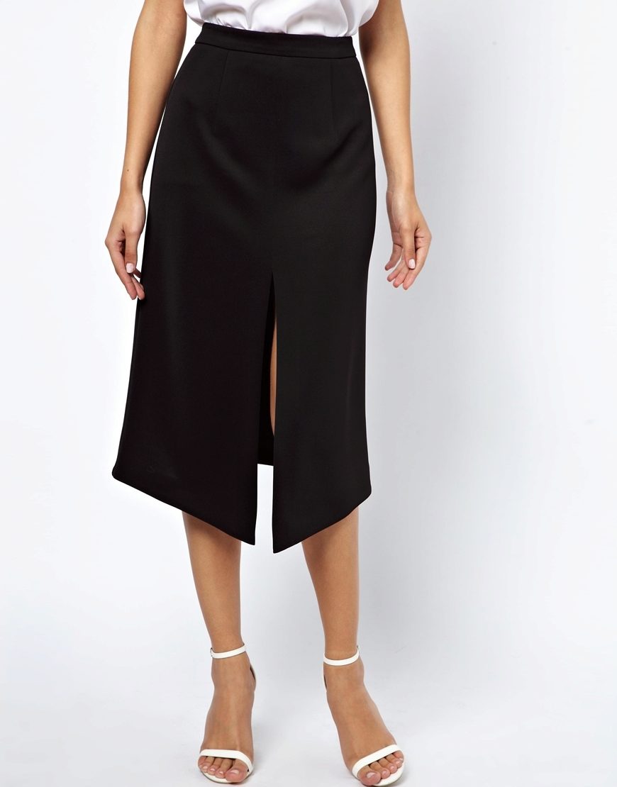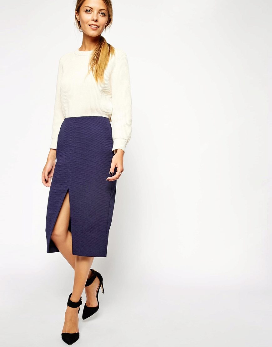 Very stylish and modern pencil skirt looks with two cuts in front or side. This option will help to add to the dry, official style a touch of femininity and sexuality.