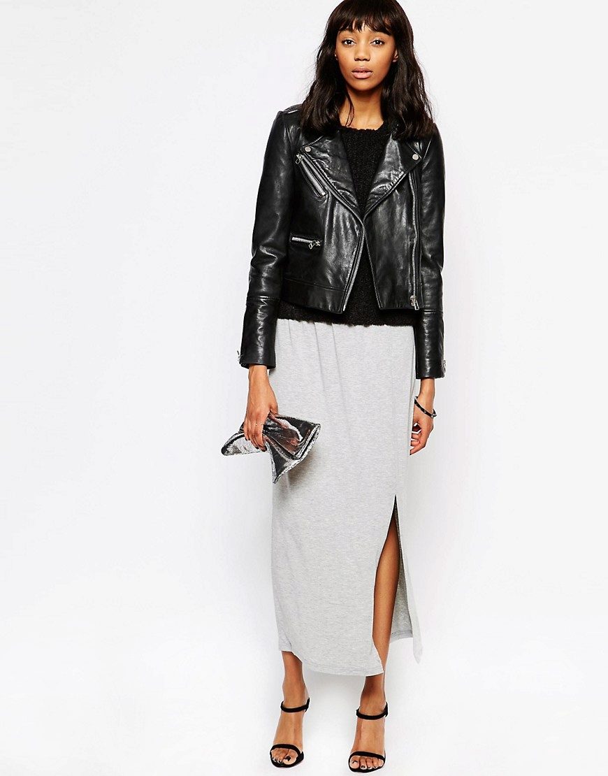 Leather skirt - fashionable and at the same time practical version of women's clothing. The model, made of leather, itself attracts the eye and becomes the central part of the created image, and the incision further enhances it.