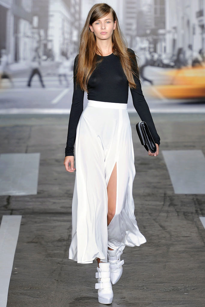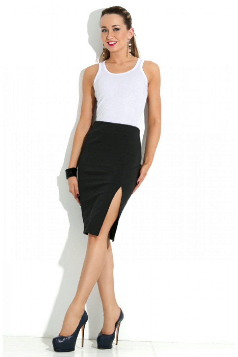 Skirts with a slit are most advantageously combined with high-heeled shoes.