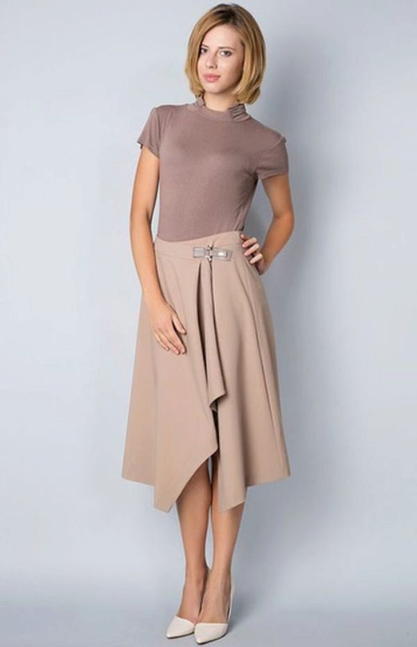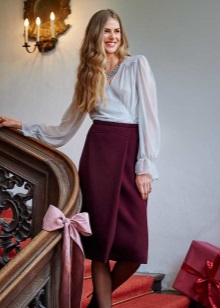 In variations with the smell, it has a special charm, because the smell is not only an element of cut. Forming an inverted V-neck, he adds zest to the style, distinguishing this model from other skirts.