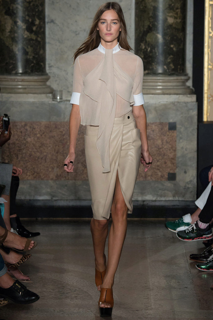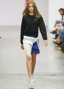 In each new fashion season, preference is given to different tones. Today the bottom-top color contrasts are very relevant - black and white, black and red, brown and cream combination. It follows that this season is more relevant skirts of the same color. But, nevertheless, still nobody canceled bright prints.