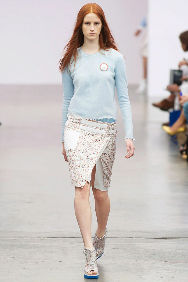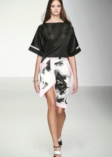 With such a simple top you can combine bright summer prints on the skirt. For example, a floral ornament on Kant or on a belt.