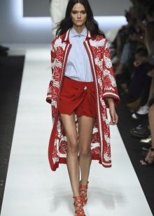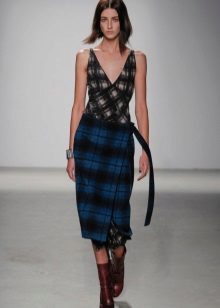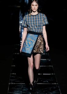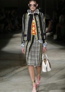 The cell remains very popular - both in winter and summer collections. In the latter there are many models of bright red and purple skirts with a smell, floral ornaments and bright edging also predominate. The same bright accessories are perfectly combined with them.