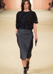 - When choosing a dark-colored skirt, emphasis should be placed on a contrasting monophonic top - light tops, turtlenecks, jumpers will look great.
