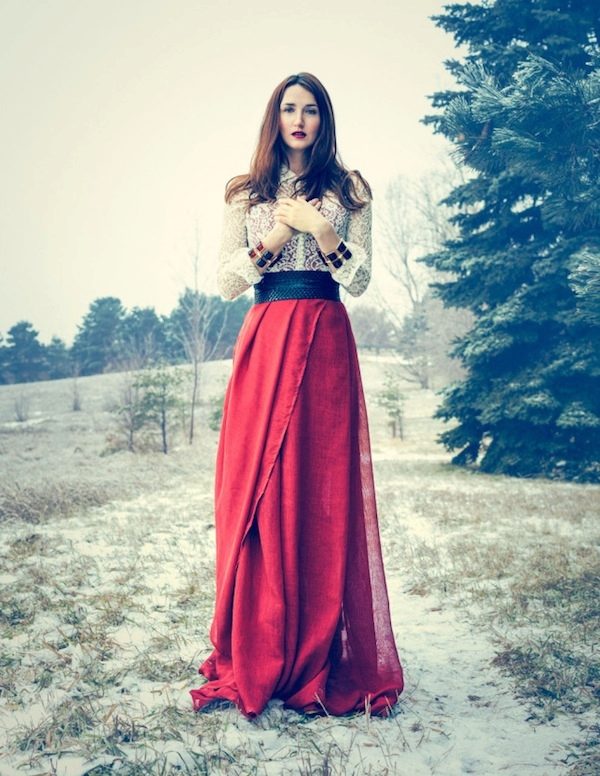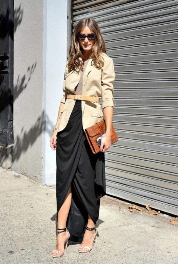 The smell on a long skirt is perfect for girls who would not like to show their legs and hips to others. Maxi skirt will hide them in its length, only slightly opened by the smell.