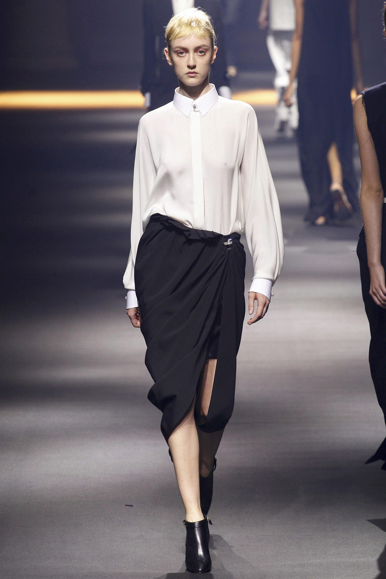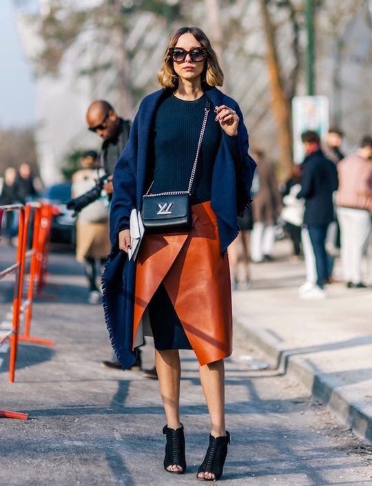 - For an office style, a classic blouse and high-heeled shoes are suitable for a strict skirt.