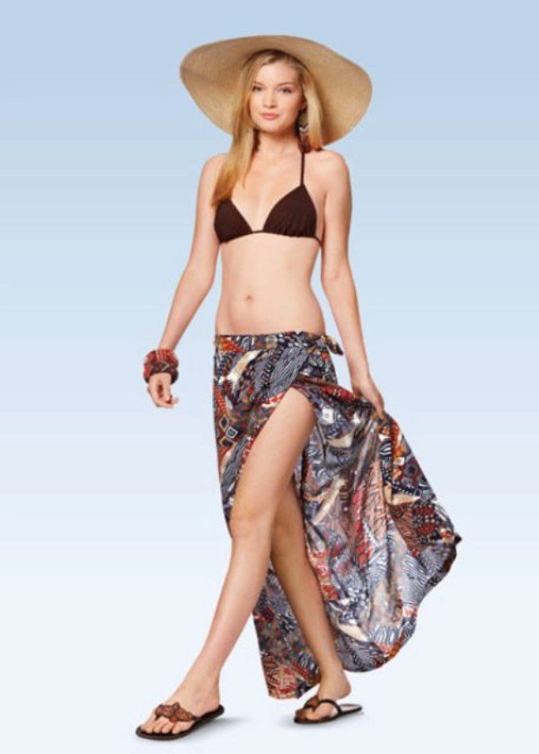 For a beach holiday skirt with a smell - perhaps the best option. The great advantage of the smell is that the skirt can be removed in an instant, while plunging into warm waves. Of the variety of bright colors you should choose only those that will be combined with a bathing suit. You should not be zealous with length if you want your legs to get a beautiful and even tan