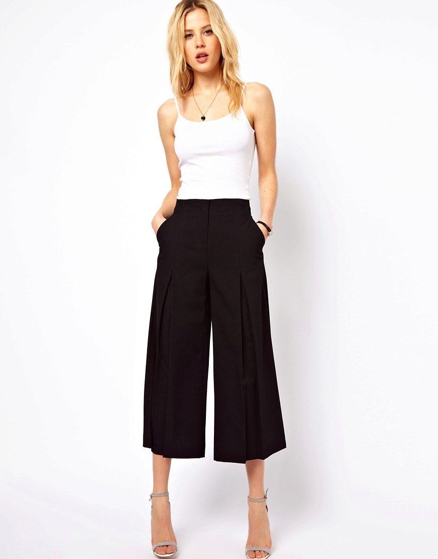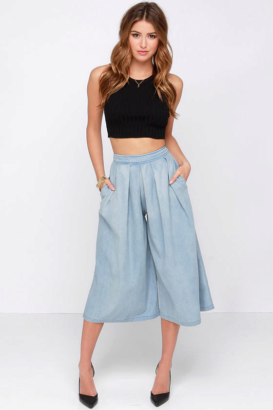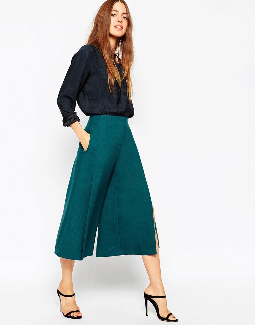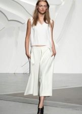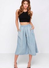 Skirt pants (culottes) as well skort (hybrid skirt and shorts) are no less relevant today. Apparently, this is the apotheosis of the century of emancipation. The broad concept of hip-hagers is not only skirts, but also pants with a low waist. There are different variations of such models. In particular, the most popular type of skirts today, which will be discussed in detail.