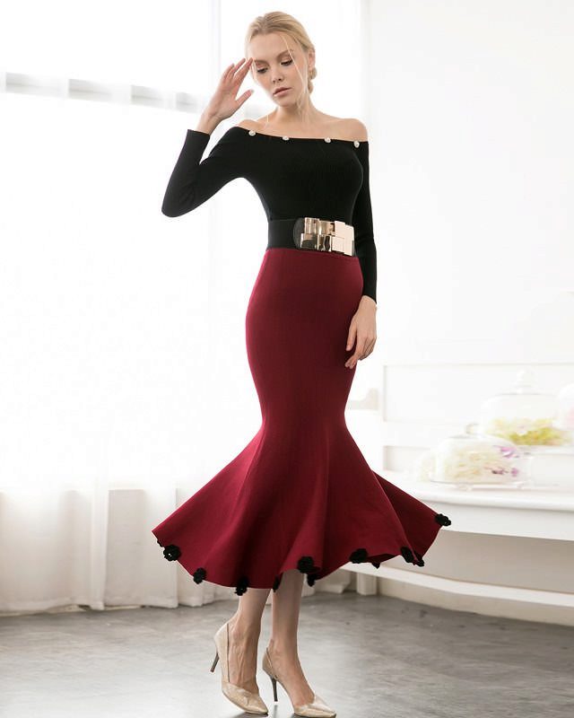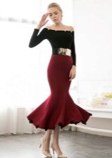 For evening exits, the ideal version of such a model is a hobble skirt. Her length falls 5-10 cm below the knees, while the skirt fits the silhouette, creating a piquant image.