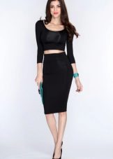 Skirt models of this style also exist a huge variety. In addition to the hip-hagers variant, which, by the way, allows for different lengths (from extremely short mini-models to models covering the knee), short pencils are relevant today (10-15 cm above the knee).