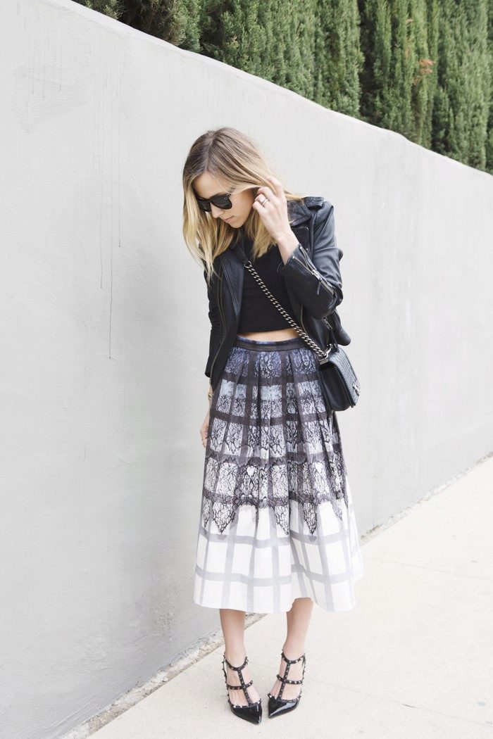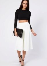 In addition to bright prints in the design of skirts, stripes, peas, and flowers are still relevant. In the summer, turquoise and deep blue, white, khaki, and mustard are especially relevant in plain colors. In winter, the skirts are gray tones, khaki, beige and dark chocolate. And, of course, there are two colors recognized as classic. They are always relevant - both in winter and in summer.
