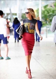 The sexiest red skirt is, of course, a short pencil skirt model (10-15 cm above the knee)! It is important to remember that only owners of ideal forms can wear such precious part of the toilet.
