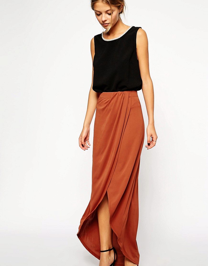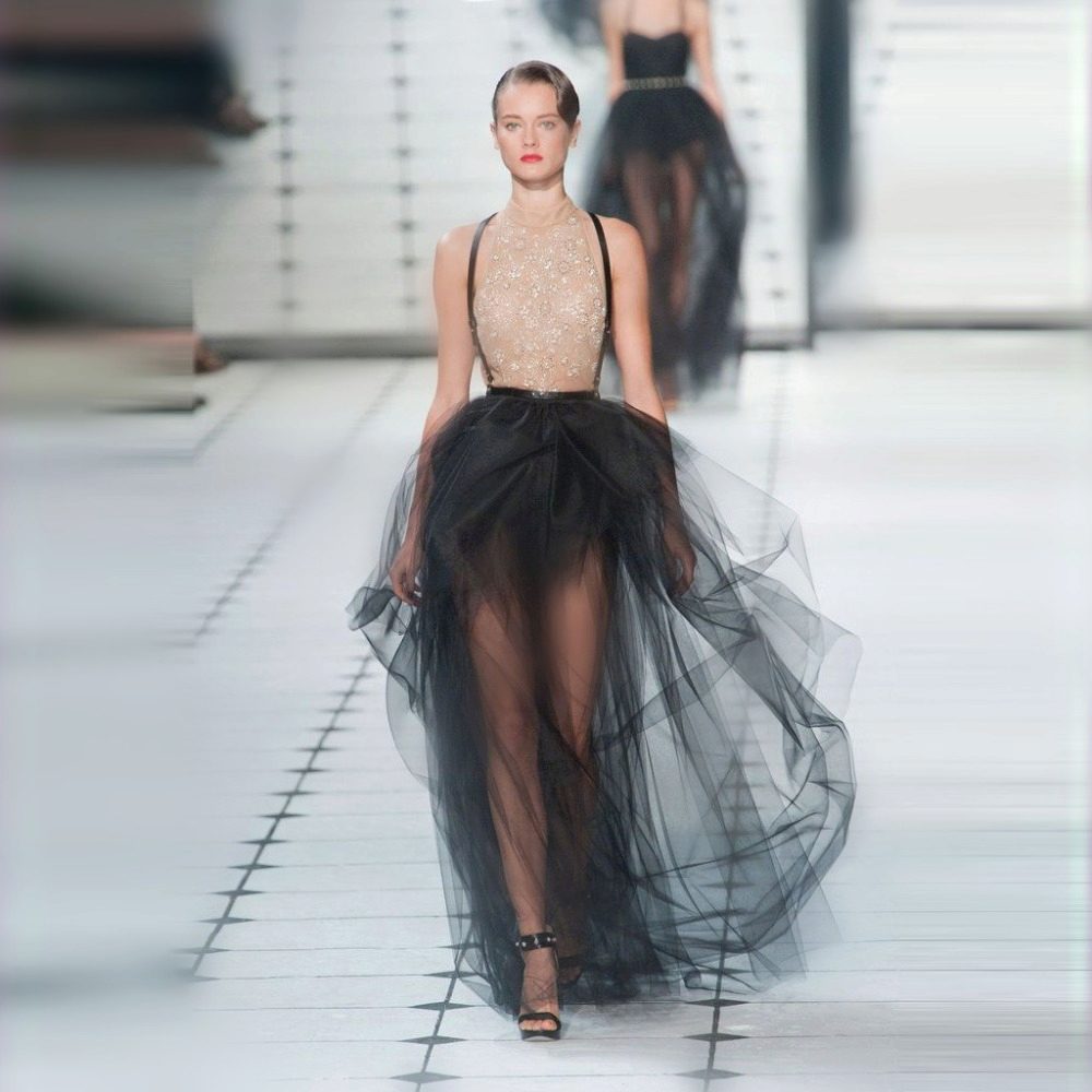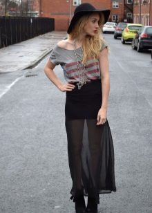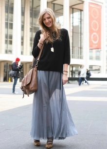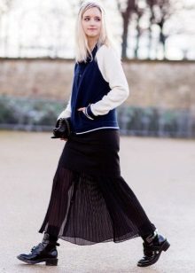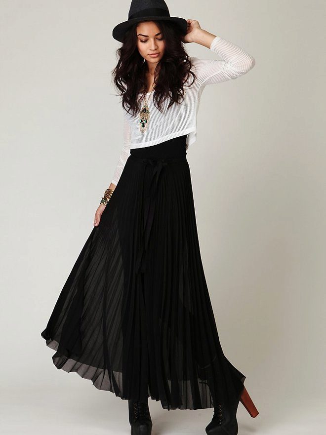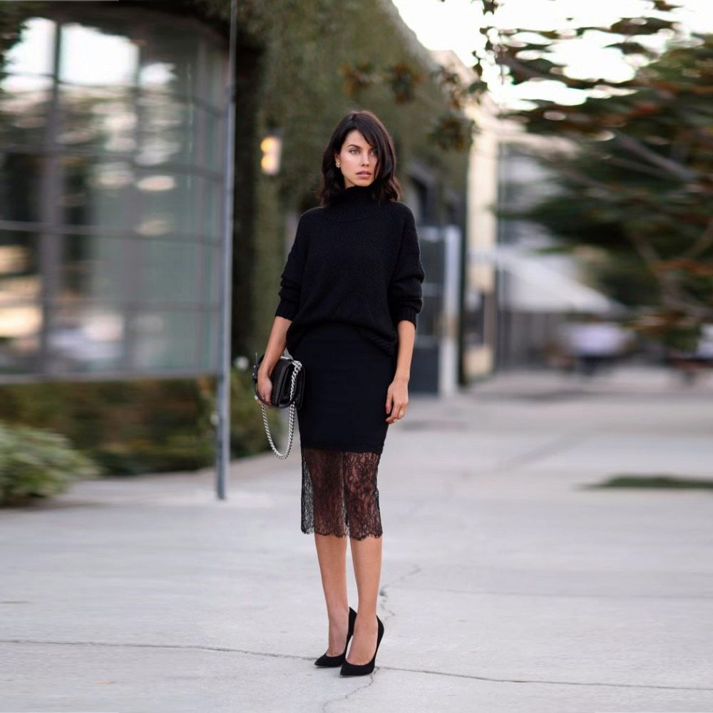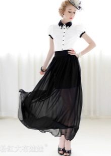 The immortal classic. Black skirts of any length and style look fashionable, stylish and seductive. But within the framework of current trends, I would still like to say: if black today, then a semi-transparent maxi on the floor! This is the most seductive and fashionable model at the moment.